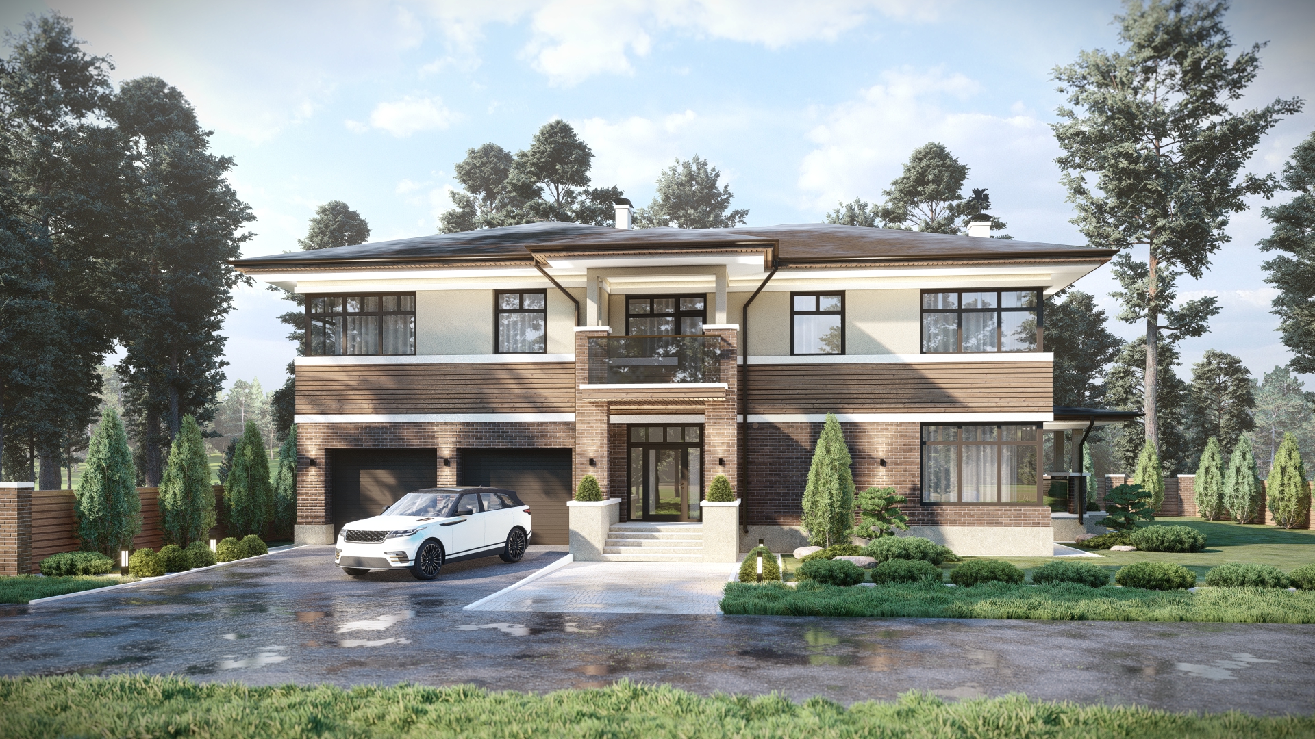 Двух этажный дом из кирпича в стиле «прерий». Дом проектировался под семью из 6 человек, не только для проживания, но и как место для...
