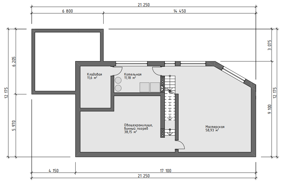 Помещения подвала: мастерская, котельная, кладовая, овощехранилище, винный погреб.
