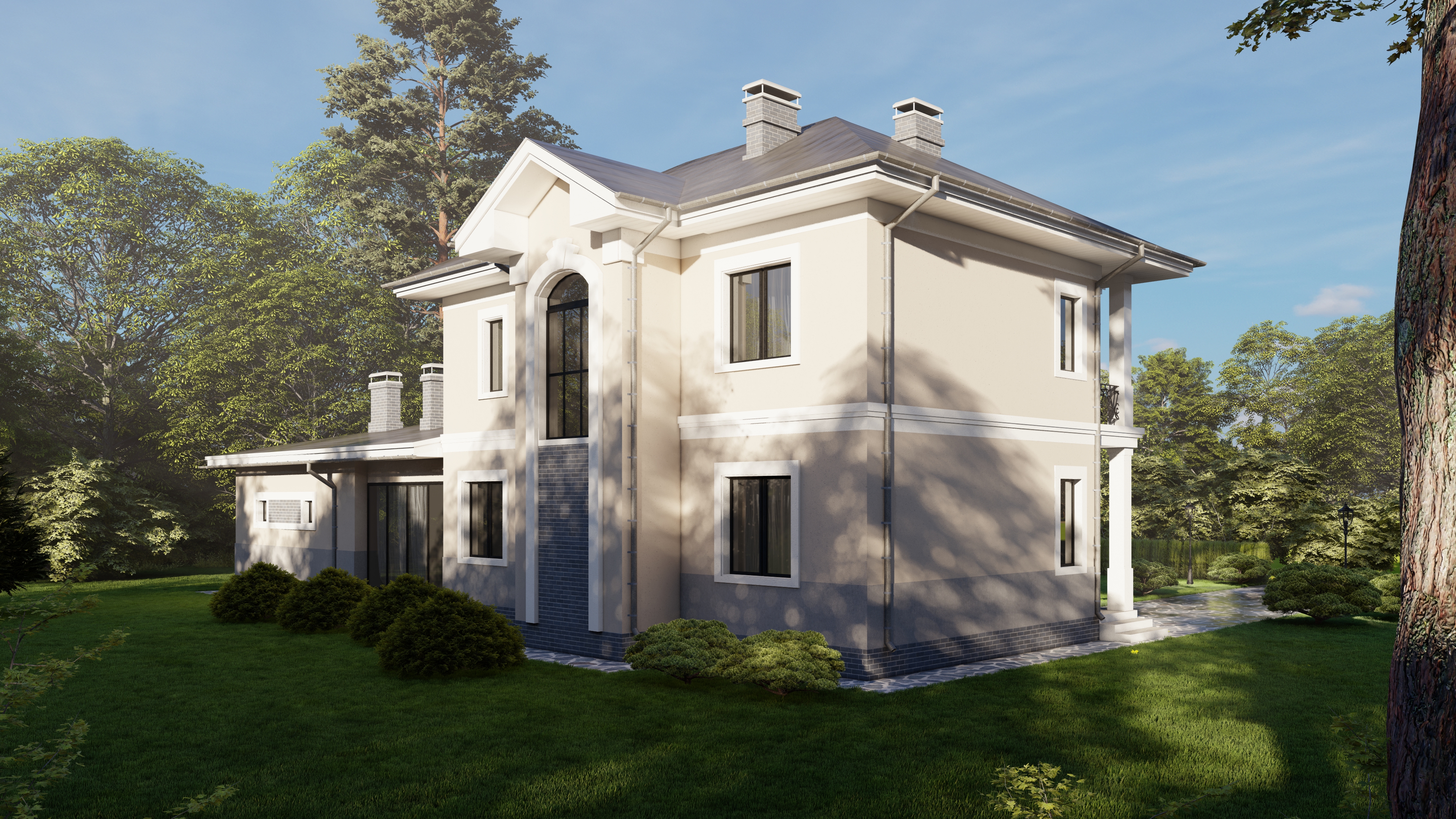 Двухэтажный дом с баней из газоблока в стиле "модерн"