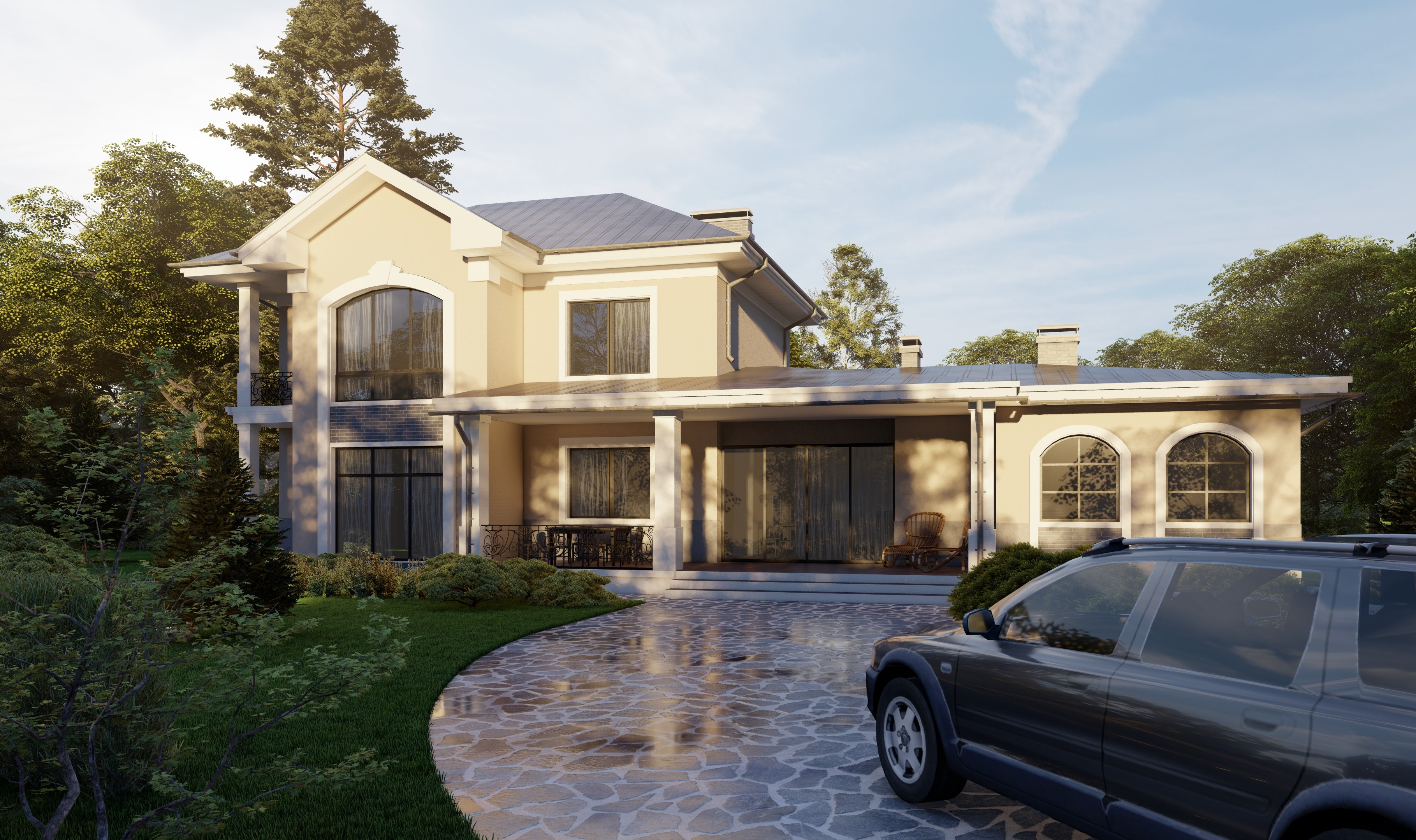 Общая площадь дома с террасой, крыльцом, балконом: 221 м