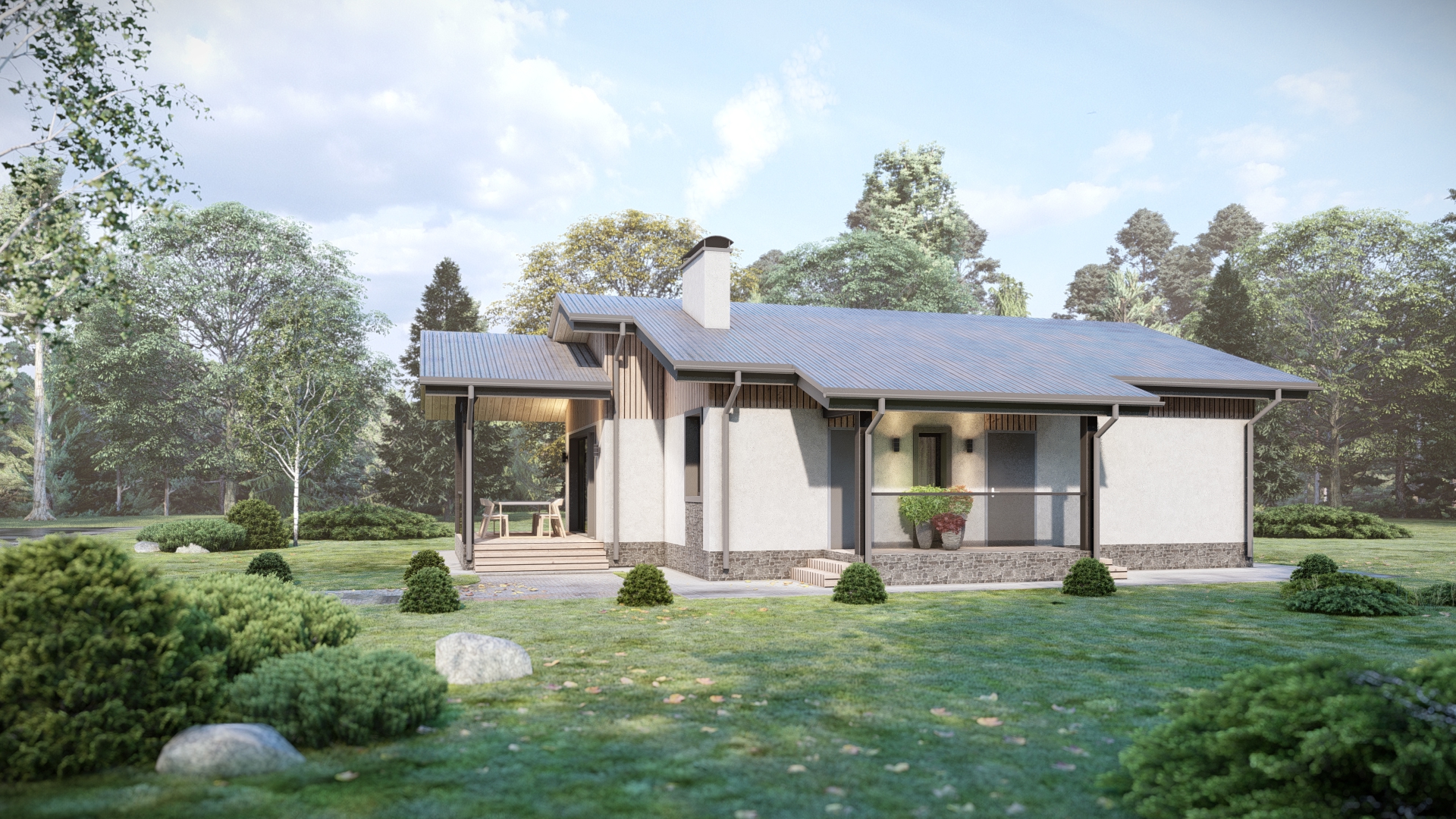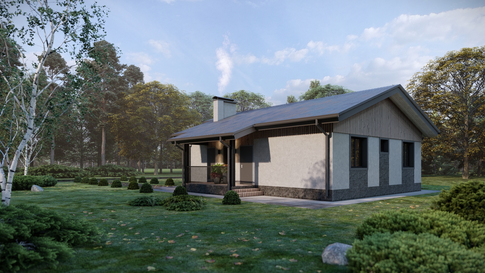 Одноэтажный дом из сибита. Выполнен в стиле минимализм.