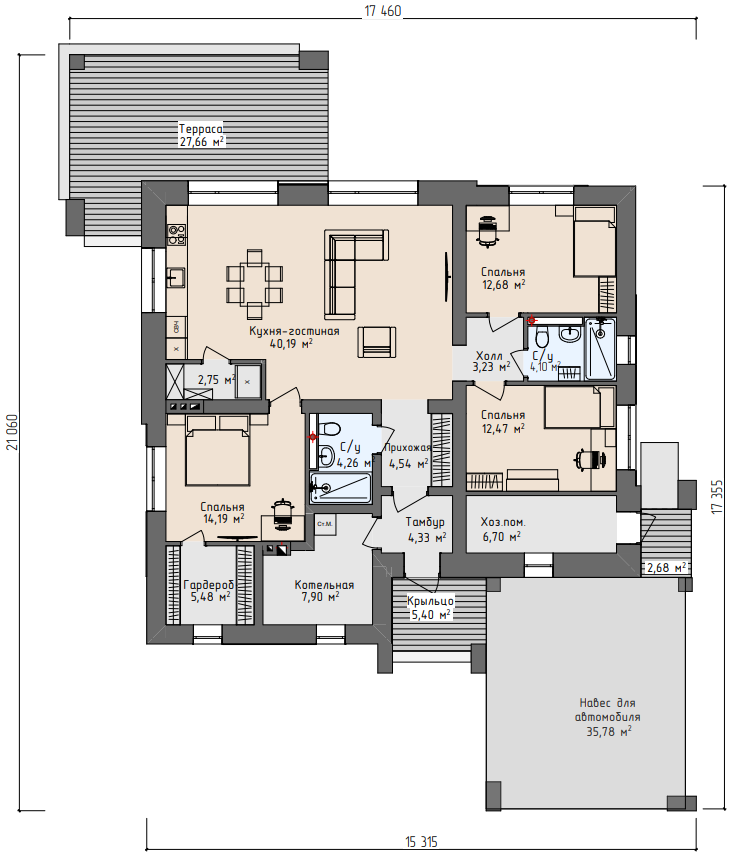 Отделка фасада:фасадная штукатурка, облицовочный кирпич, планкен.
