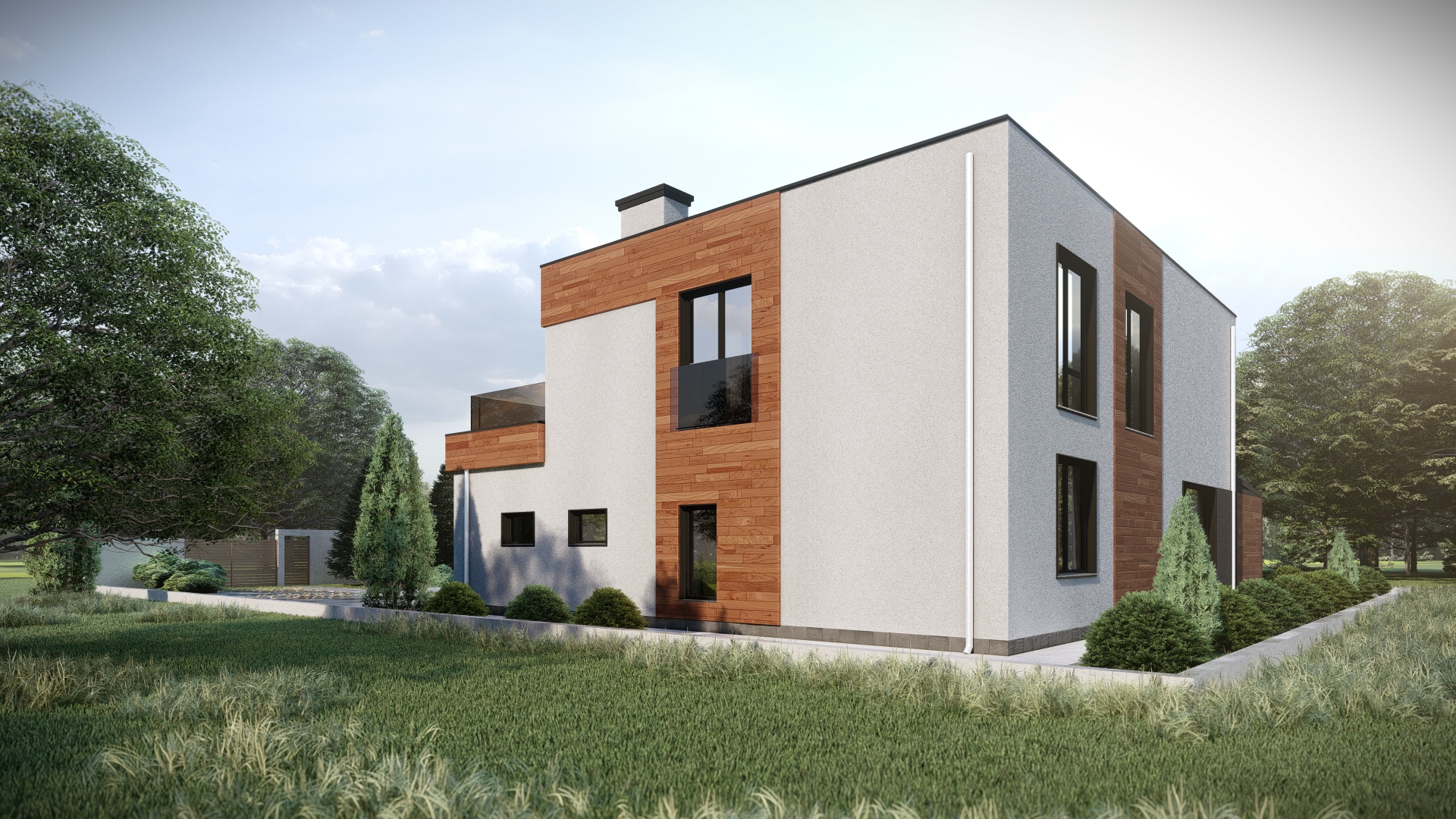 Двухэтажный индивидуальный жилой дом из кирпича в стиле минимализм