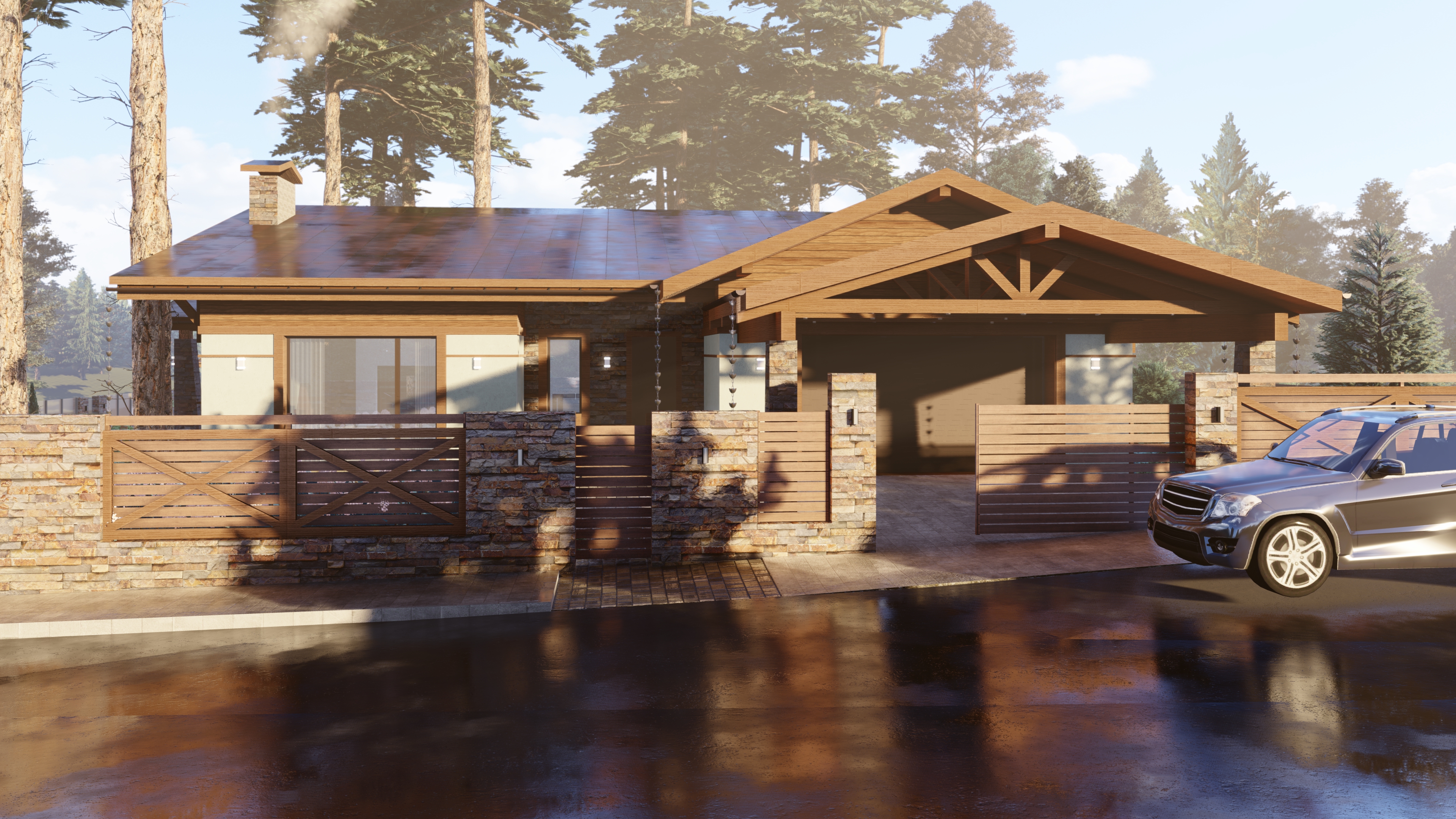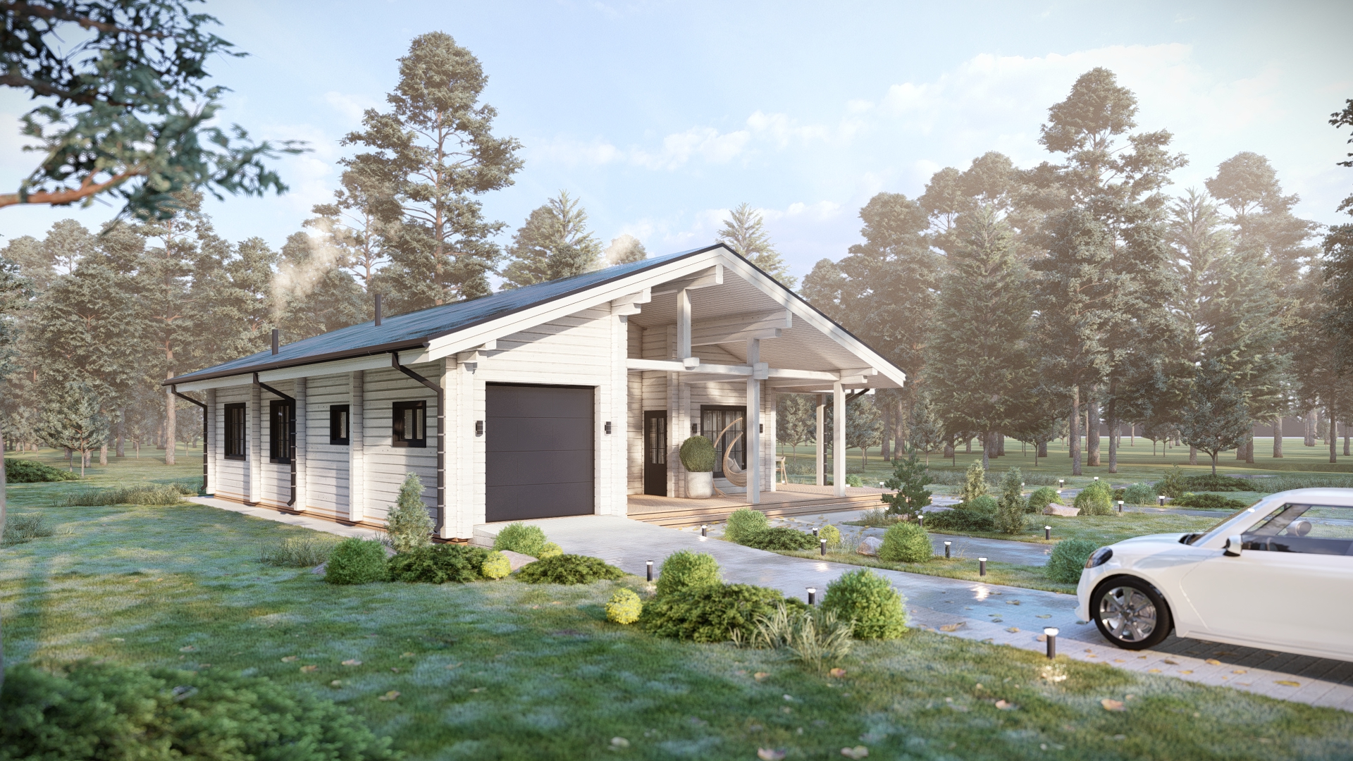 Одноэтажный дом из профилированного бруса. Выполнен в стиле шале. В фасаде преобладает текстура окрашенного дерева. Помещения дома:...